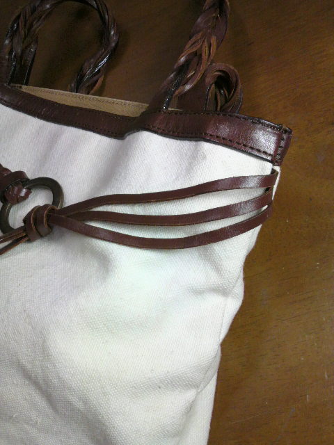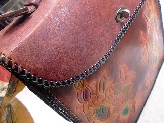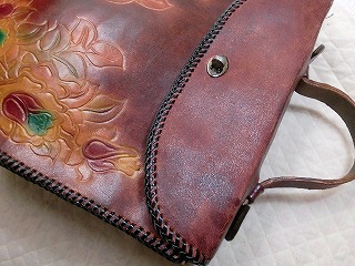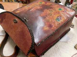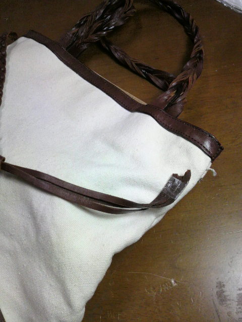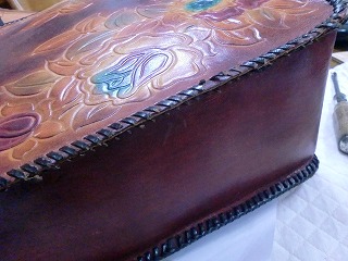 30年前のかばんの革紐製の縁取りを、全て外して新しく巻き替えました。