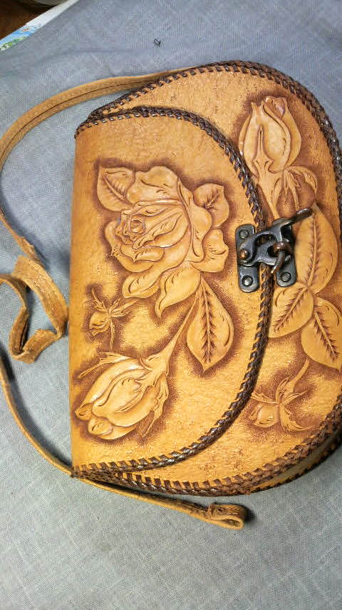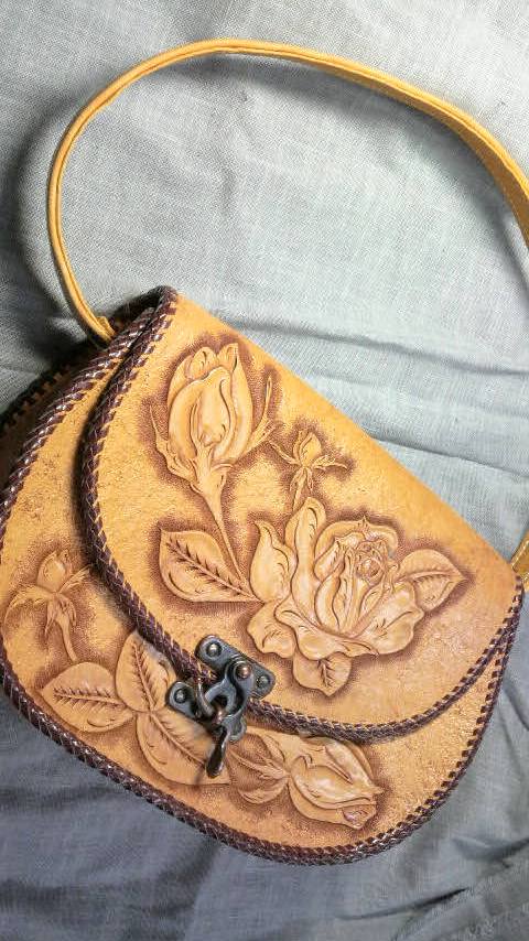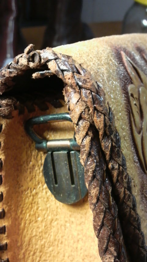 ショルダーバッグの持ち手を新たに作り直しました。さらに革紐製の縁取り(レース)を全て外して新しく巻き替えました。