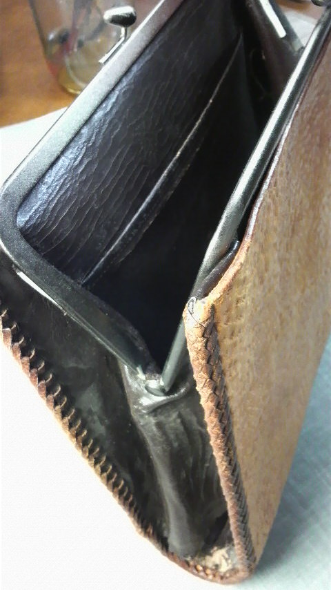 がま口タイプのセカンドバッグの口金を外し、マチと持ち手を新たに作製し取り付けしました。