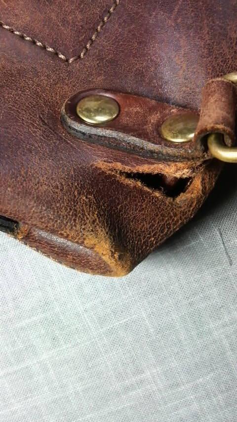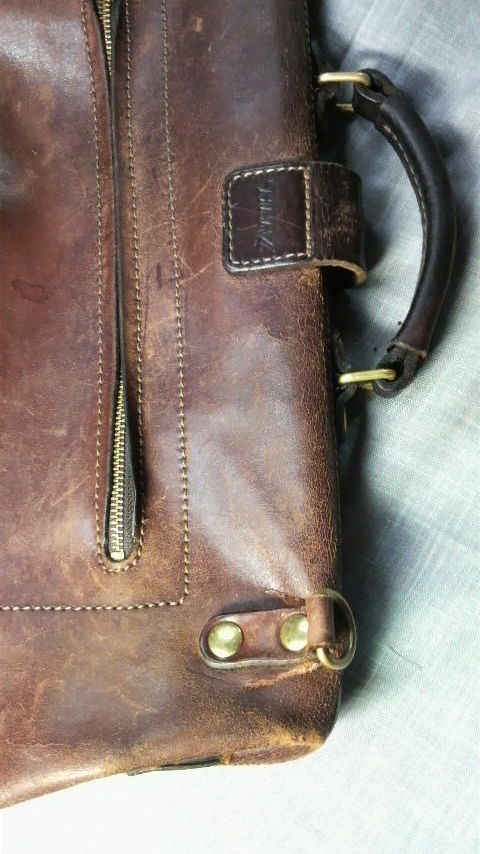 修理例2 ビジネスバッグの破け修理(革当て縫い)